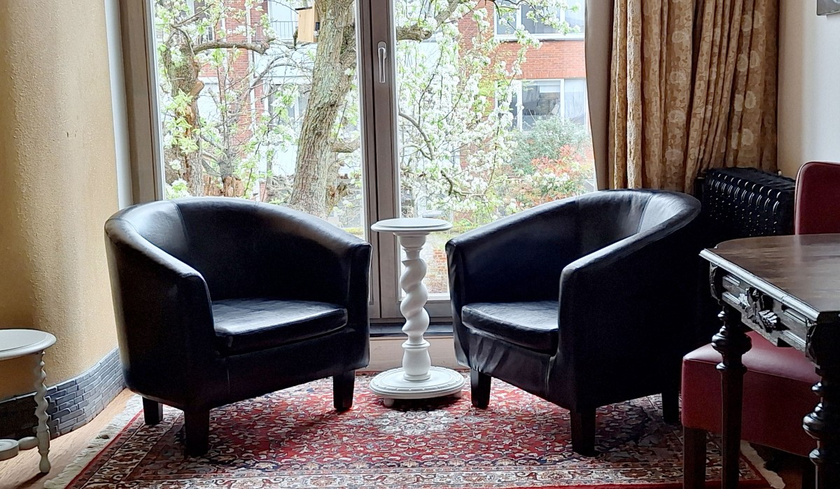 Rustige kamer met zicht op de tuin en een oude perenboom. Grote ramen, ochtendzon, apart zit- en slaapgedeelte, ronde le... Lees meer..